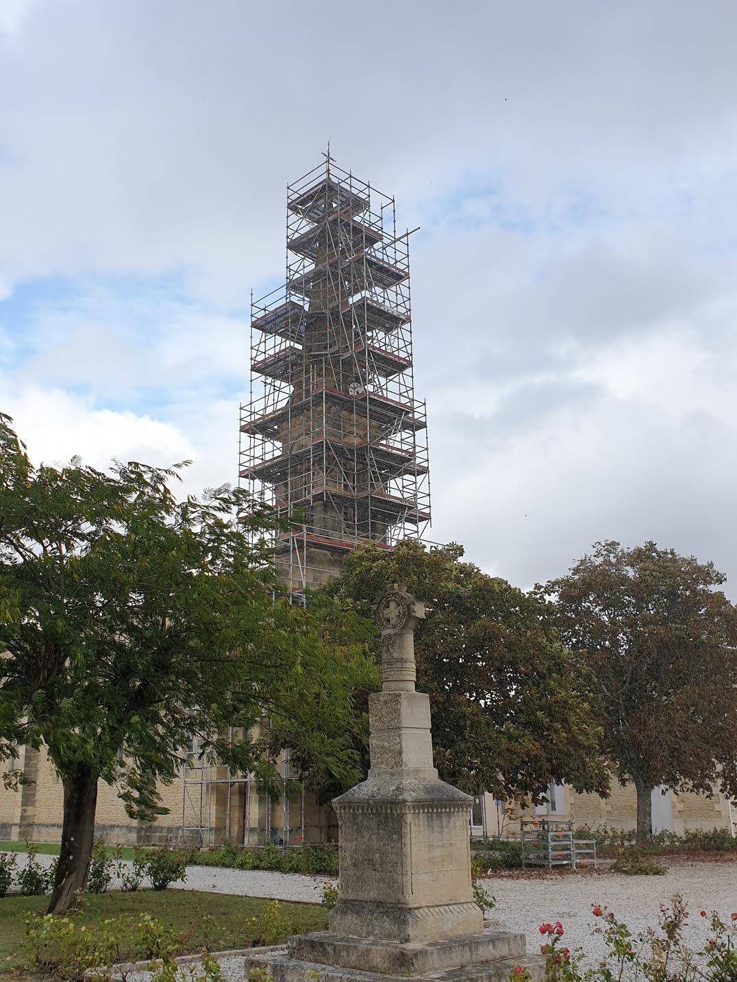 Montage et démontage d'un échafaudage pour la réfection du clocher de l'église de Blaignan prés de Lesparre Médoc