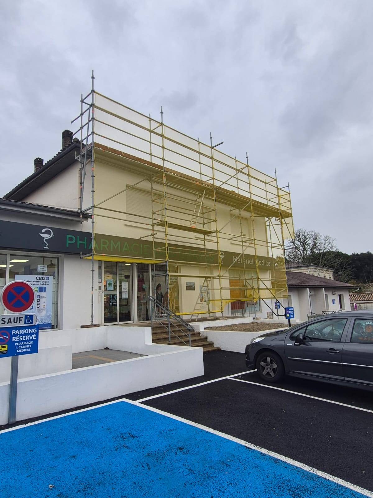 Pose d'un échafaudage fixe pour des travaux de ravalement de façade sur la région de Nantes